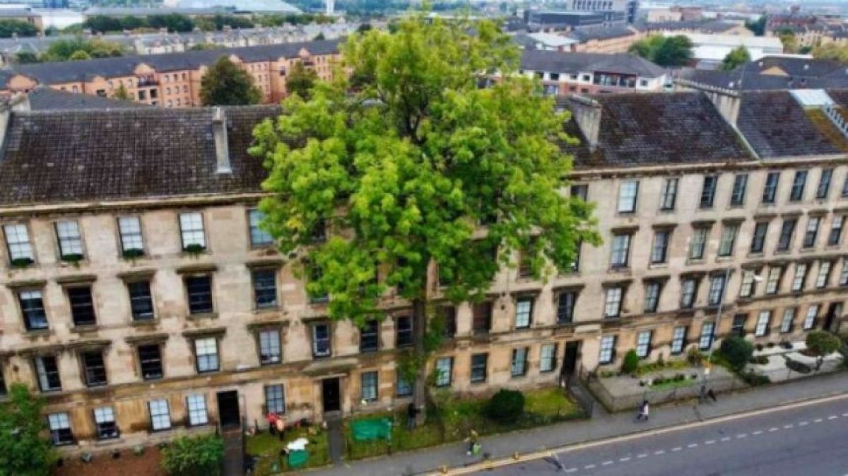 獲救的角鴞掛在被魚線纏住的樹上