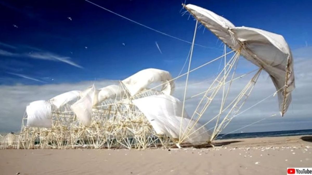 當風吹過海灘時,奇怪的“生物”用骨骼般的“腿”在沙灘上滑行。